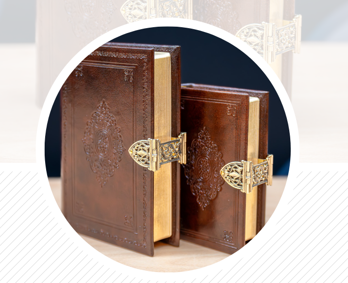 Zakbijbel (GBS) in antiek leder gebonden met een klassiek koperen slot met Psalmen met ritmische zetting in de notenbalk en formulieren. 9 x 13cm. Dundruk. Met 10 landkaartjes. in bruine kunstleren koker.