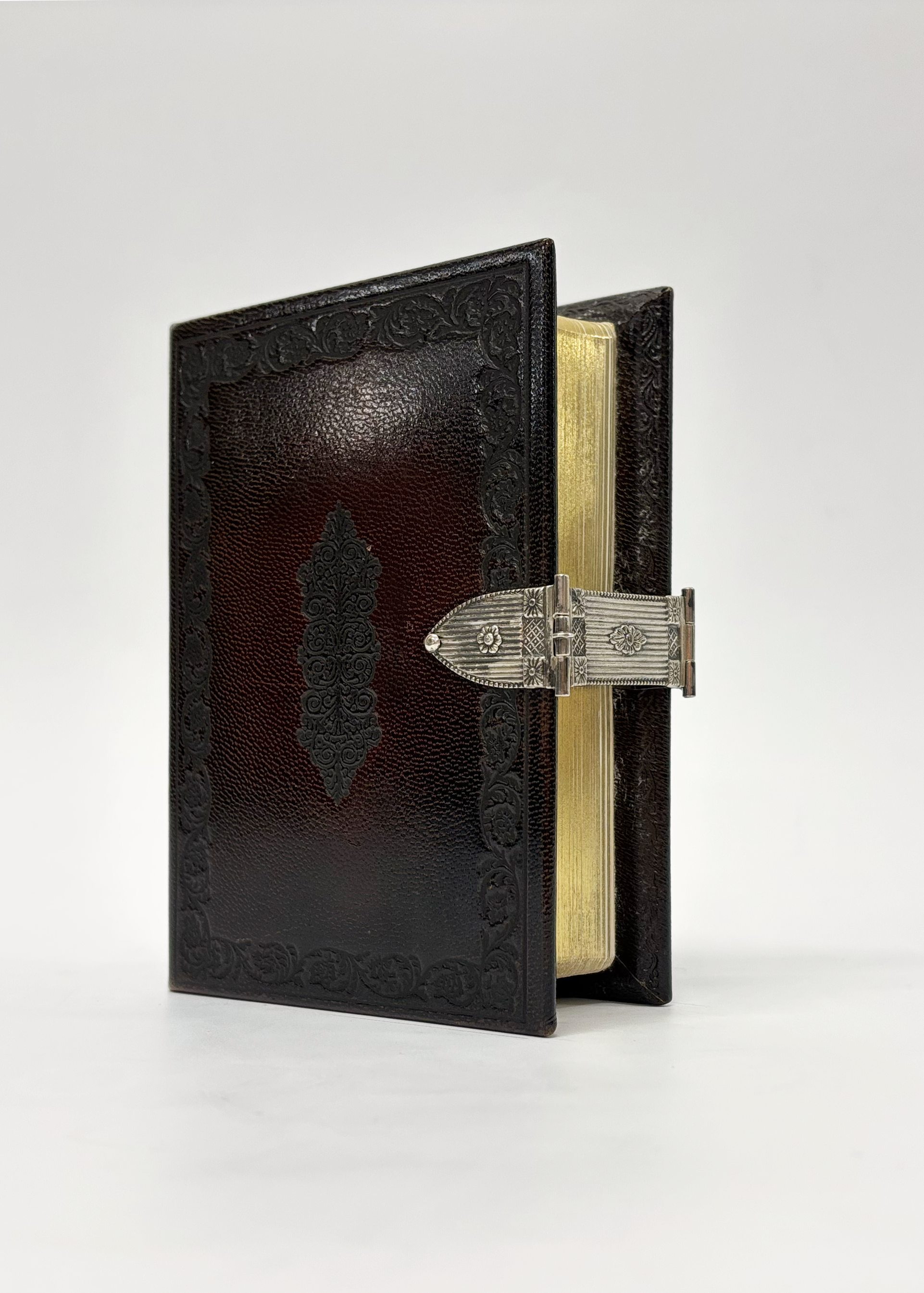 Antiekgebonden Bijbeltje met psalmen en formulieren, Jongbloed met zilveren slot.