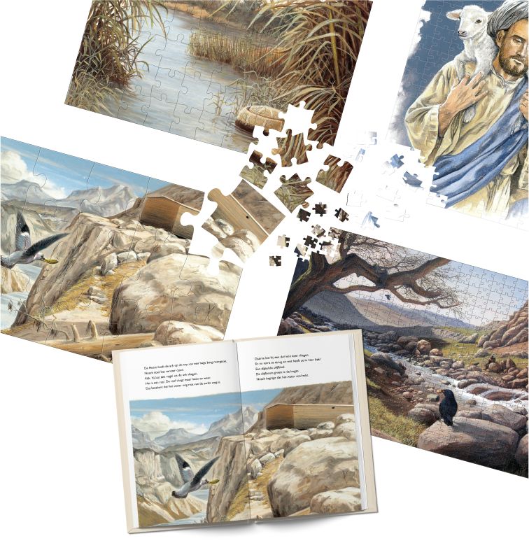 Bij het prentenboek dat in deze doos zit, zitten maar liefst vier puzzels! De puzzels bestaan uit 15, 60, 200 en 500 stukjes zodat iedereen mee kan puzzelen. Alle vier de puzzels hebben een mooie Bijbelse afbeelding die terugkomt in het prentenboek, zodat ook wordt uitgelegd wat de afbeeldingen op de puzzels betekenen. Door het eenvoudige taalgebruik en de grote letters is het ideaal om voor te lezen of om zelf te lezen. Zo kunt u lezen en puzzelen met het hele gezin.