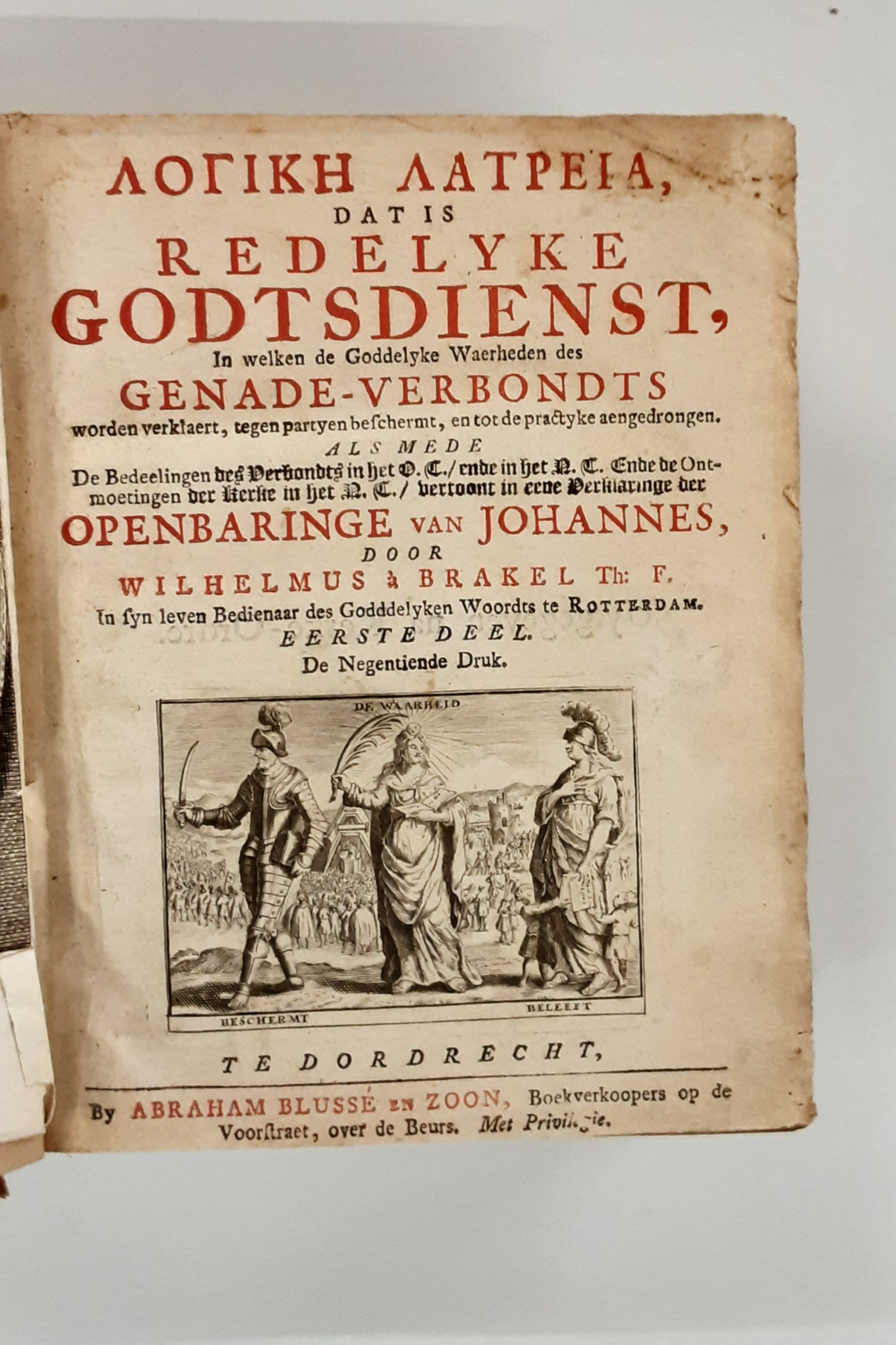 Redelyke Godtsdienst, In welken de Goddelyke waerheden des Genaden-Verbondts worden verklaert, tegen partyen beschermt, en tot de practyke aangedrongen. Als mede De bedeelinge des Verbondts in het O.T., ende in het N.T. Ende de Ontmoetingen der Kerke in het N.T., vertoont in een verklaringe der Openbaringe Johannes.