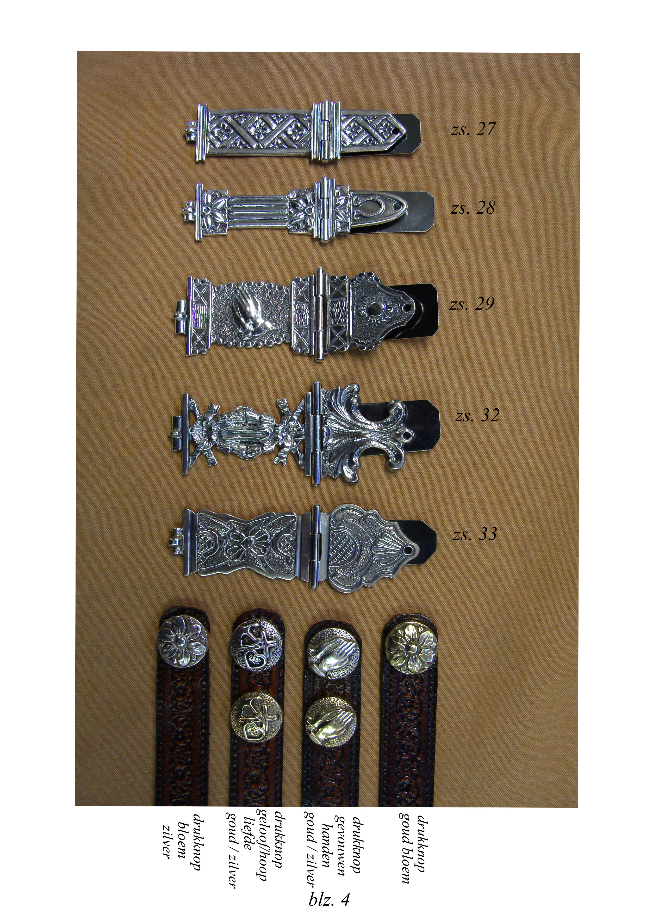 U hebt keuze uit verschillende zilveren en gouden sloten en knopjes