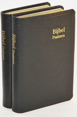 Zakbijbel (groot) met Psalmen en formulieren. 10,5 x 16 cm. Dundruk. Met 10 landkaartjes. Standaard in kartonnen koker.